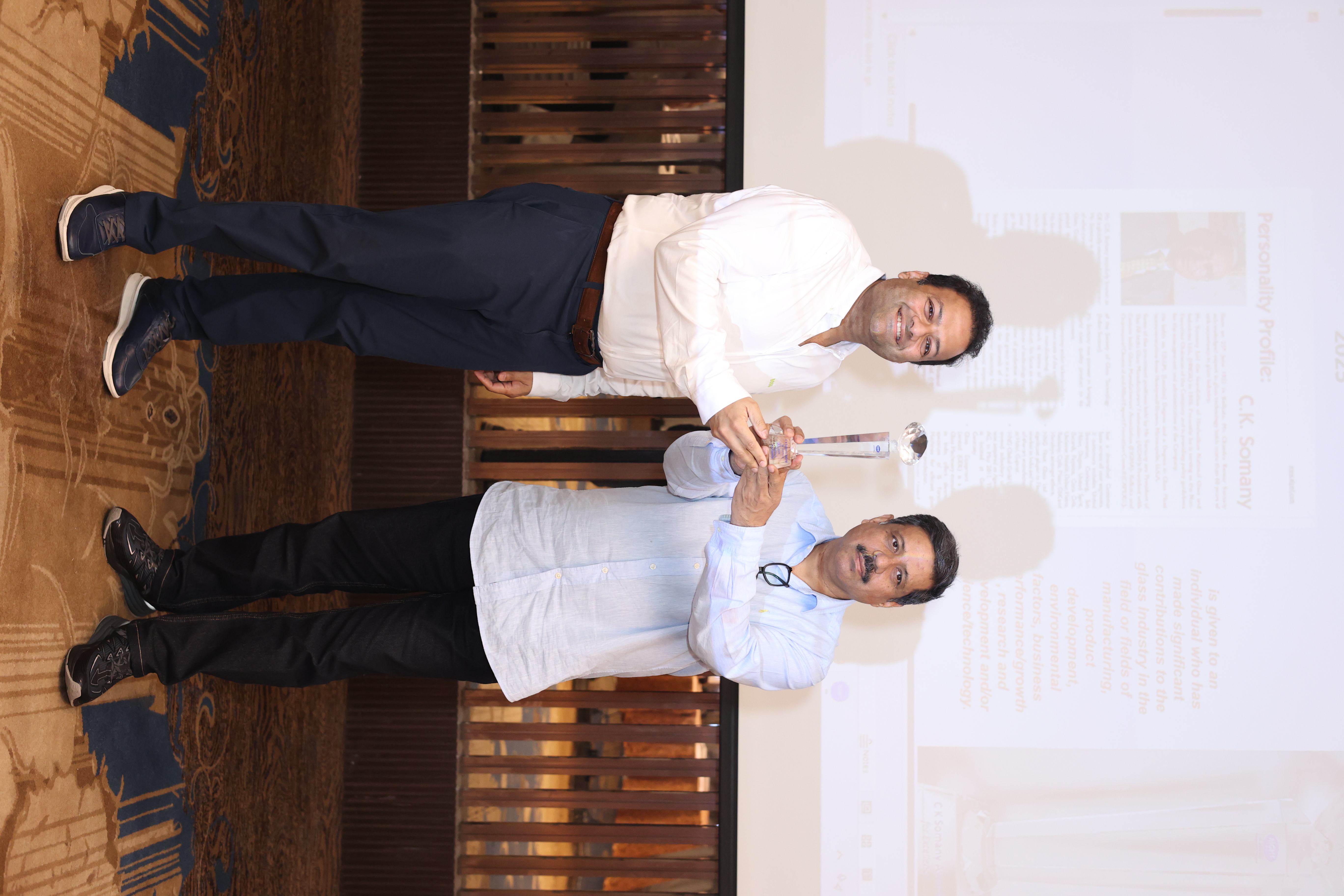 The accompanying Balkrishna Gupta Award honours Mr. Gupta as founder of the Advance Group of Glass Industries in Firozabad. With more than 70 years of experience of running many glass manufacturing units in Firozabad, Mr. Gupta also served as President of the AIGMF and Uttar Pradesh Glass Manufacturers' Syndicate (UPGMS).