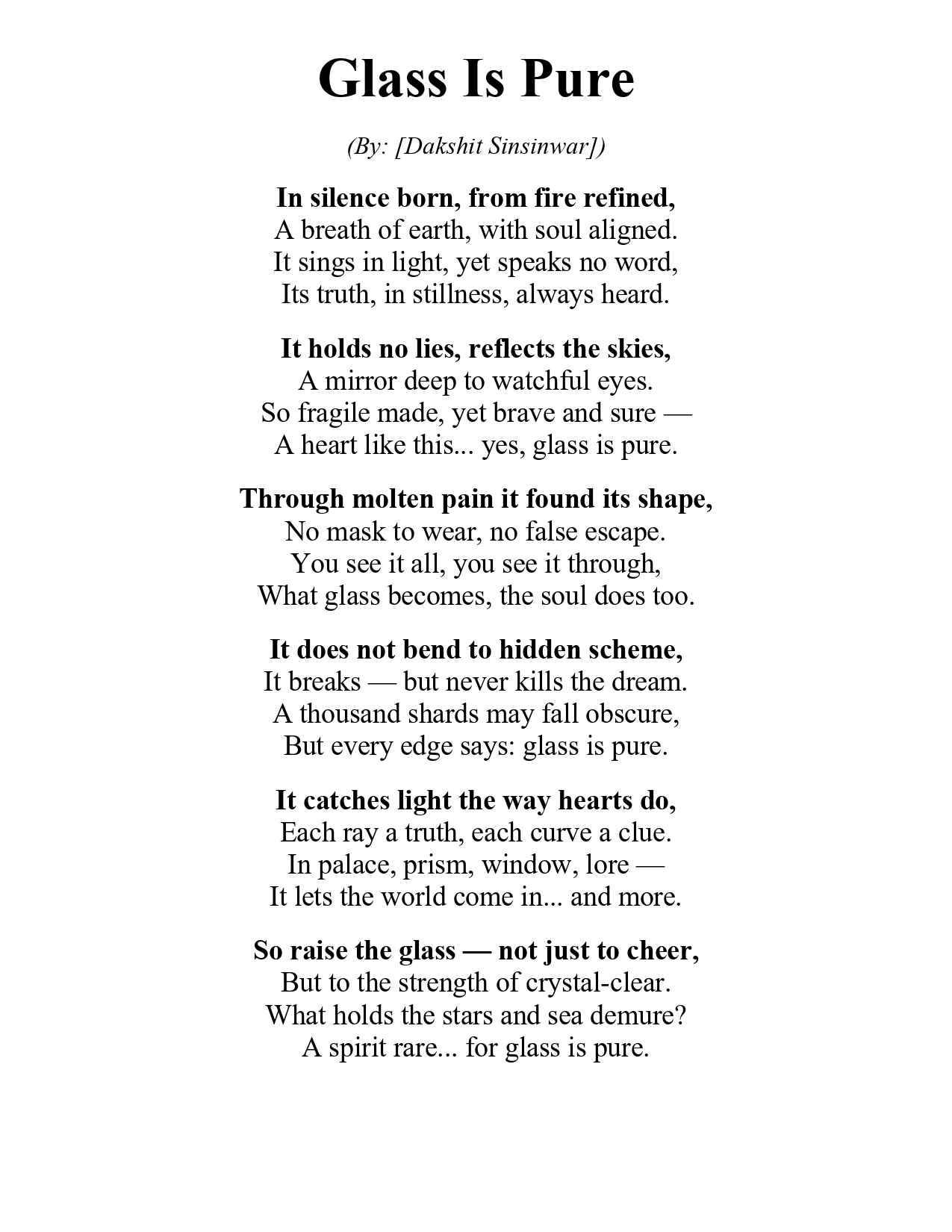 1st Poem / Essay Writing Contest- ‘Green as Glass’ (August 12, 2022)