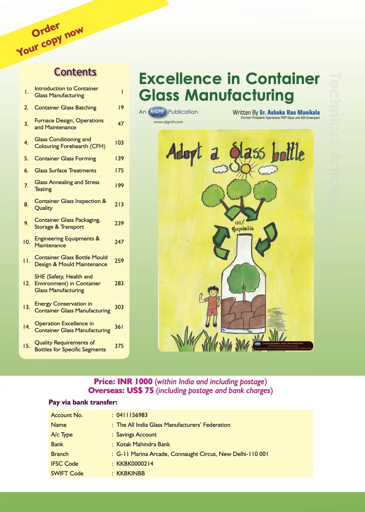 We are hopeful that this book will help everyone working in container glass industry, the suppliers & service providers, container glass customers and students pursuing studies on glass manufacturing.